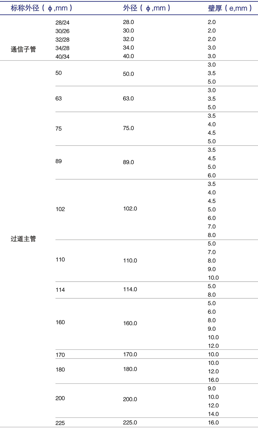 PE通信管產品規格